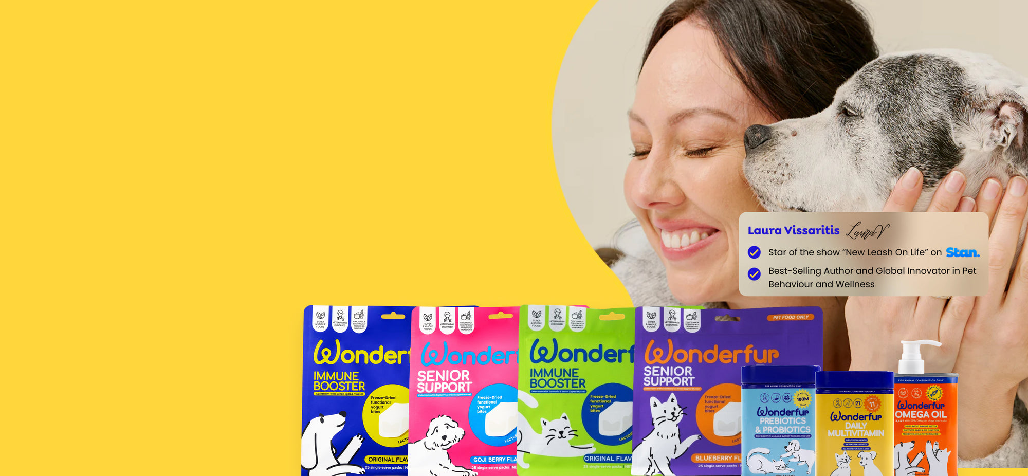 At Wonderfur, we're more than a brand. Our mission is simple: to create science-backed, functional treats and supplements that elevate your pet's health, happiness, and longevity. Harnessing the power of nature and cutting-edge science, we craft innovative, vet-formulated products that go beyond the ordinary. Because every wag, purr, and playful bounce matters.
