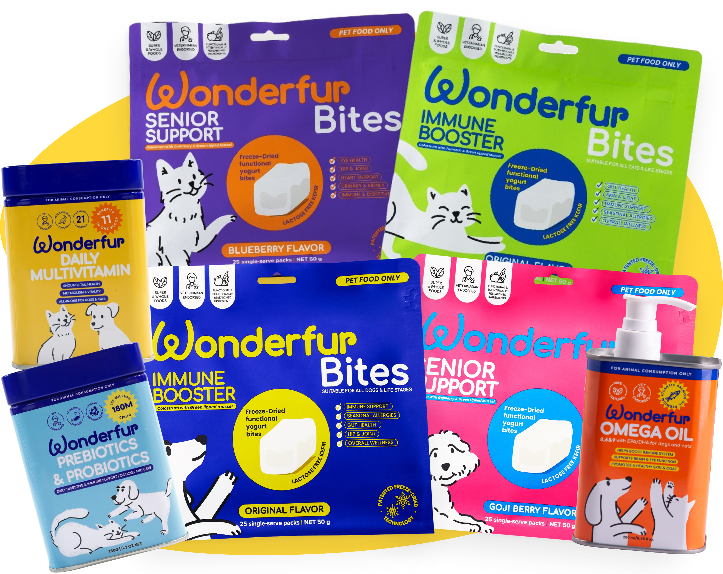 That's why Wonderfur is different. At Wonderfur, we do things differently. We spent years developing our own unique, patented pet supplement technology, crafted entirely in-house in Australia. We go the extra mile by sourcing premium ingredients, partnering with veterinarians, and ensuring every product is designed to support dog and cat health — from gut health and immunity to skin, coat, joints, and overall wellness.